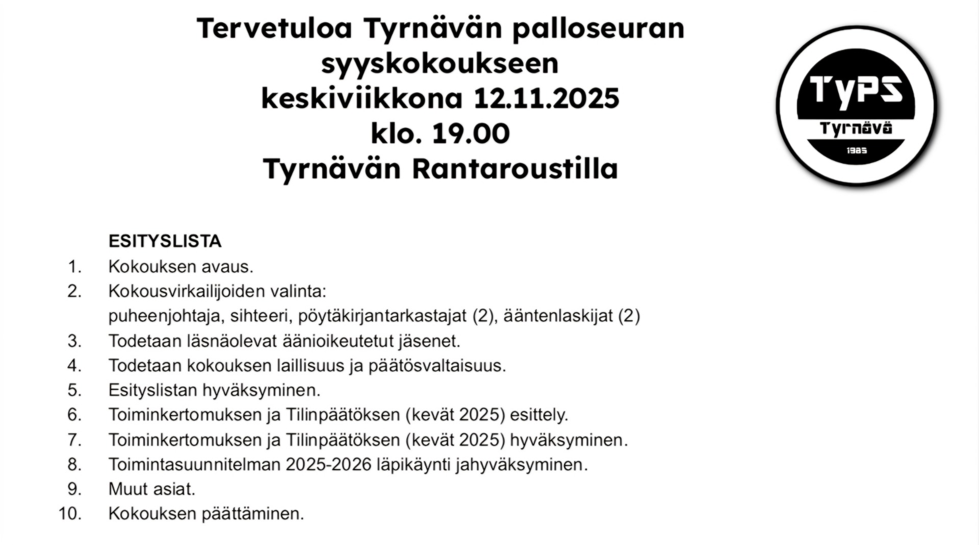 Tyrnävän palloseuran syyskokous